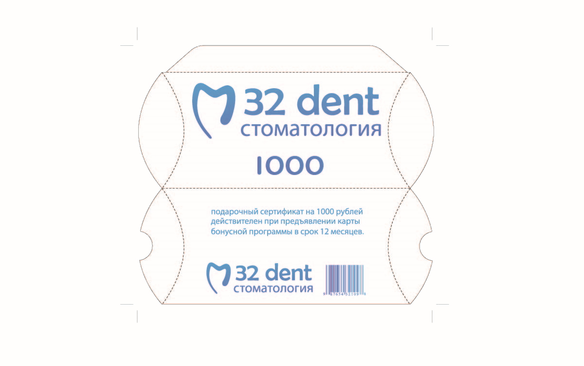 Разработка простого логотипа и минималистичного дизайна визитных карточек для стоматологического кабинета 32 dent. Были подобраны корпоративные цвета и бумажник для подарочных сертификатов.